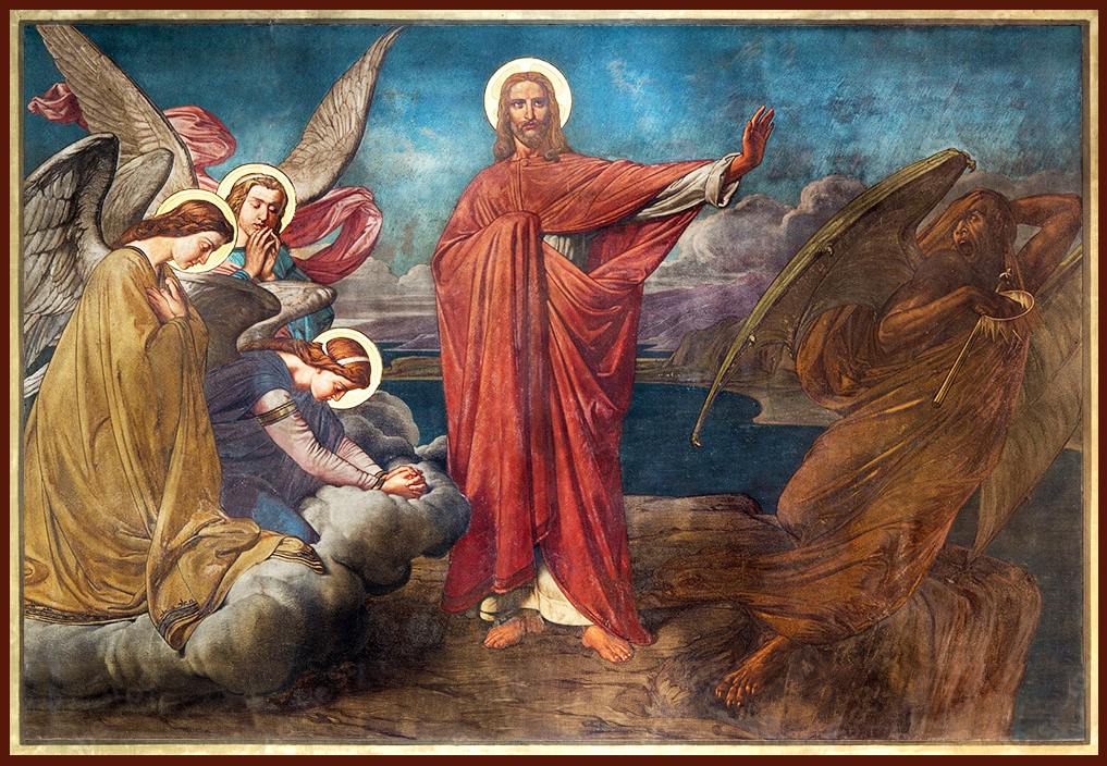 THEN was Jesus led up of the spirit into the wilderness to be tempted of the devil. And when he had fasted forty days and forty nights, he was afterward an hungred. And when the tempter came to him, he said, If thou be the Son of God, command that these stones be made bread. But he answered and said, It is written, Man shall not live by bread alone, but by every word that proceedeth out of the mouth of God. Then the devil taketh him up into the holy city, and setteth him on a pinnacle of the temple, and saith unto him, If thou be the Son of God, cast thyself down: for it is written, He shall give his angels charge concerning thee: and in their hands they shall bear thee up, lest at any time thou dash thy foot against a stone. Jesus said unto him, It is written again, Thou shalt not tempt the Lord thy God. Again, the devil taketh him up into an exceeding high mountain, and sheweth him all the kingdoms of the world, and the glory of them; and saith unto him, All these things will I give thee, if thou wilt fall down and worship me. Then saith Jesus unto him, Get thee hence, Satan: for it is written, Thou shalt worship the Lord thy God, and him only shalt thou serve. Then the devil leaveth him, and, behold, angels came and ministered unto him.