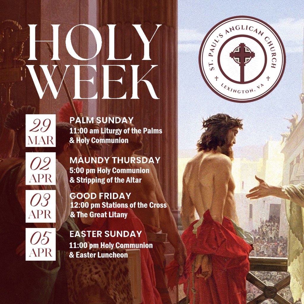 St. Paul’s is a traditional Anglican church, serving the greater Lexington, Virginia area. As a community of Christians we invite you to join us as we follow in the footsteps of Christ, through repentance and faith, with joy and gladness. Come and rejoice with us in “the beauty of holiness” (Ps. 96) and help us as we minister to our community in the name of Christ. We have services of worship every Sunday morning using the Bible and the traditional Book of Common Prayer (1928) as our order of worship and rule of prayer.