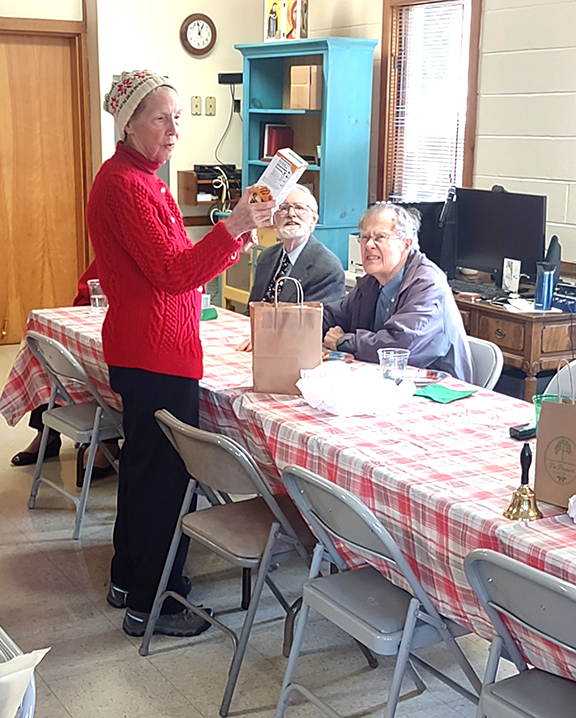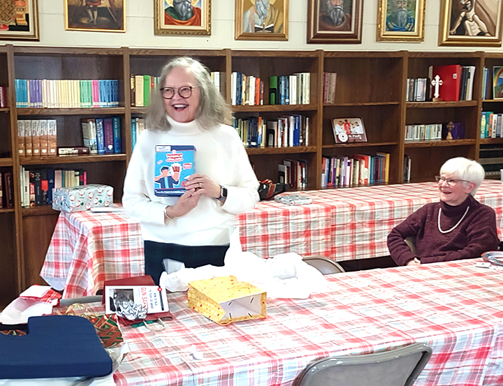 Crazy, creative, and strange gifts were given and stolen all in good fun – a yodeling pickle, a metallic cowboy hat, and a rock with a smiley face to name just a few. Thanks be to God for celebration and good times to laugh together!