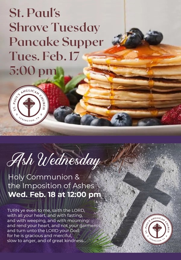 Join us for the Pancake feast before the Lenten fast. Feb. 17 Shrove Tuesday Pancake Supper at 5:00 pm and Ash Wednesday Holy Communion & the Imposition of Ashes on Feb 18 at 12:00 pm. February 11, 2026 ~ joliegrout Share this: Share on X (Opens in new window) X Share on Facebook (Opens in new window) Facebook Like Loading...